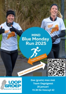 Met de Blue Monday Run proberen we zoveel mogelijk donaties voor MIND op te halen en gaan we zelf ook hardlopen. We starten maandag 20 januari om 19.30 uur vanaf Pecos en lopen of wandelen dan zo’n 5 kilometer. Het is zeker geen wedstrijd: we doen het heel ontspannen en ervaren dan met elkaar hoe hardlopen en wandelen kan helpen bij mentale problemen.