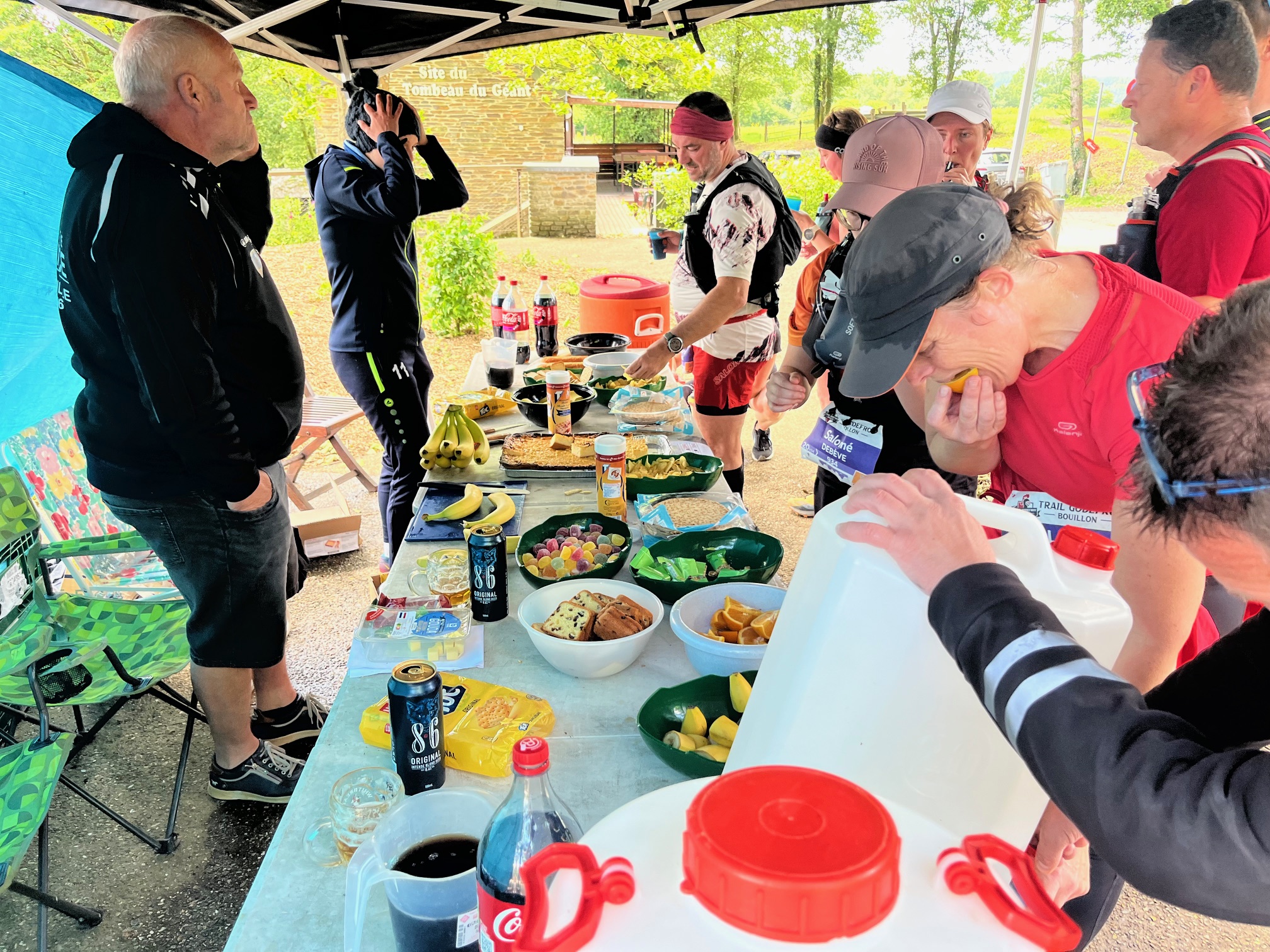 erug om mijn reisgenoten binnen te juichen die ook echt hun best hadden moeten doen om de ravito’s op tijd te passeren verzekerden ze me vriendelijk inlevend. Petje af want het waren absoluut en relatief echt heel veel hoogtemeters van een lastige soort en dan toch zo vrolijk finishen.