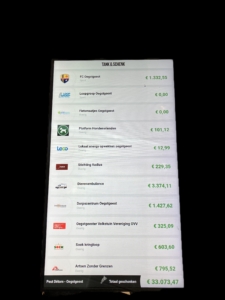 Op het raam bij de receptie hangt een display waarop je kan zien hoeveel er al gescoord is voor onze vereniging.