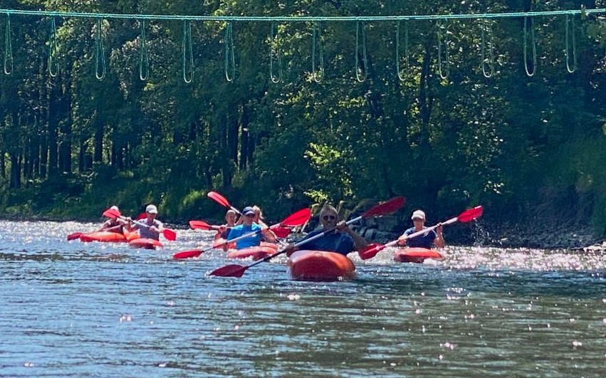 De zondagochtend startte met een bootcamp en nadat een deel van de mensen huiswaarts trok, werd het weekend afgesloten met een fantastische kajaktocht over de Emblève.